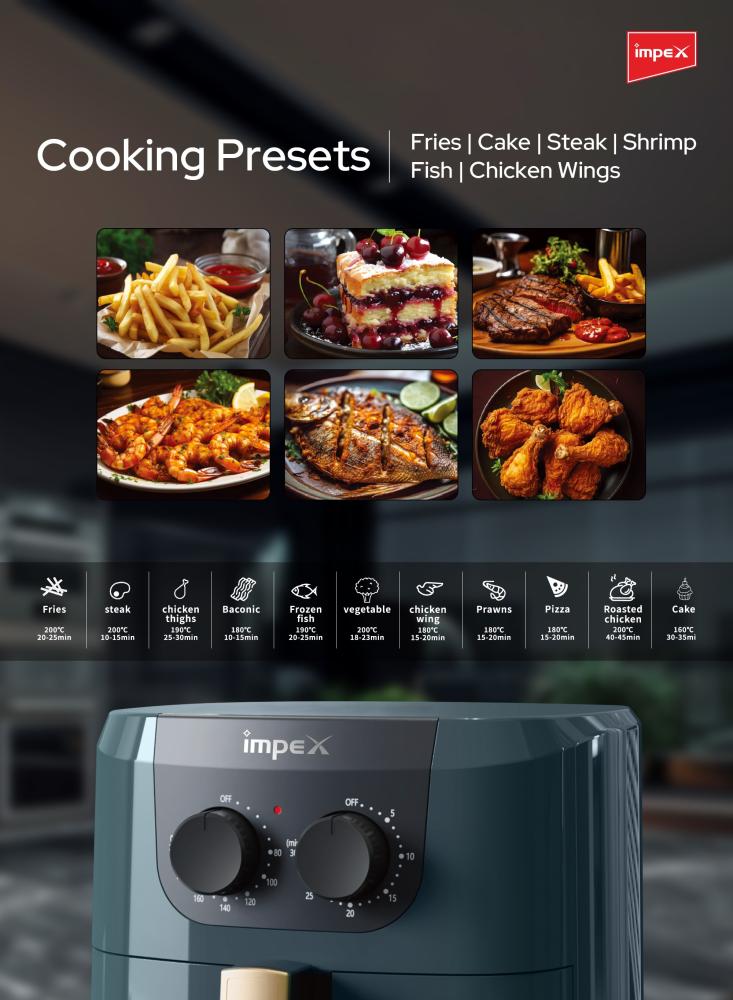 Impex Mechanical Air Fryer 4.5L | 30-Min Timer, Overheat Protection | Saudi Arabia | AF 4305