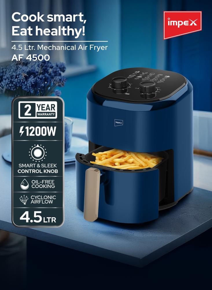 Impex Air Fryer | Oil-Free Cooking, Non-Stick, 25 Liners | Best in Saudi Arabia | AF 4500