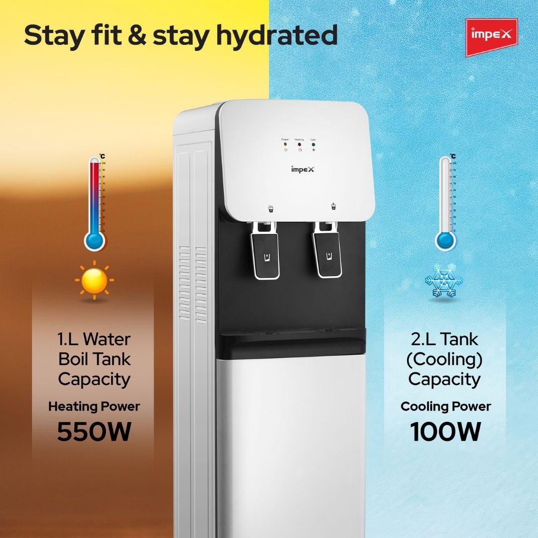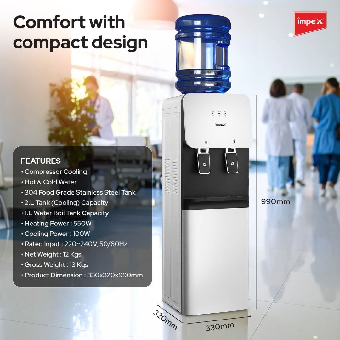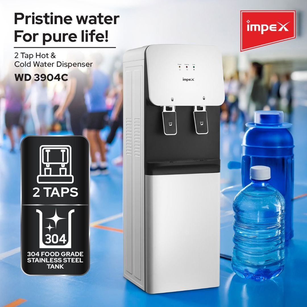 Impex Hot & Cold Water Dispenser with Stainless Steel Tank WD3904C – White